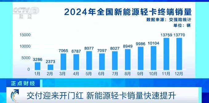 2025年1月,我國(guó)新能源輕卡市場(chǎng)實(shí)銷4637輛,同比增長(zhǎng)41%,創(chuàng)下歷年來最佳首月表現(xiàn)。記者梳理發(fā)現(xiàn),2024年,我國(guó)新能源輕卡市場(chǎng)累計(jì)銷量近10萬輛,全年有7個(gè)月銷量超過8000輛,并且自10月份起,連續(xù)3個(gè)月銷量突破一萬輛。