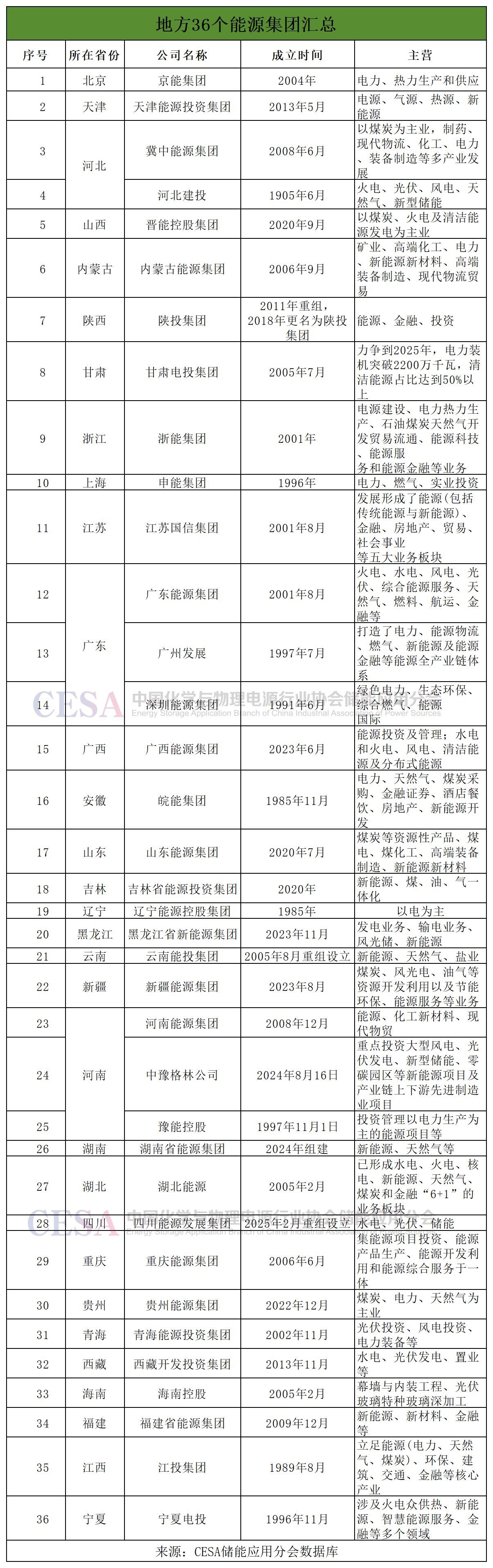 以下為36個地方能源集團業(yè)務(wù)布局: