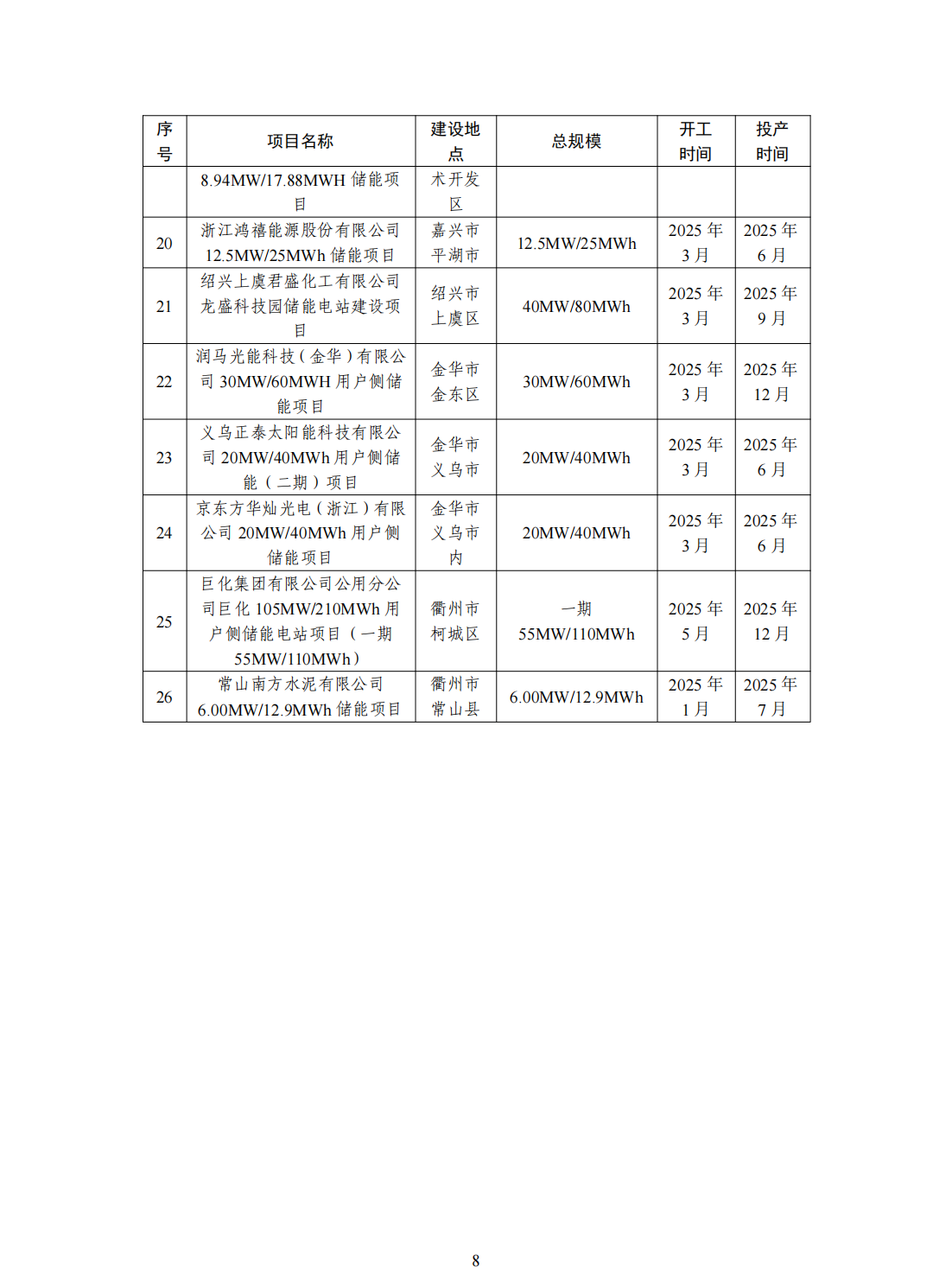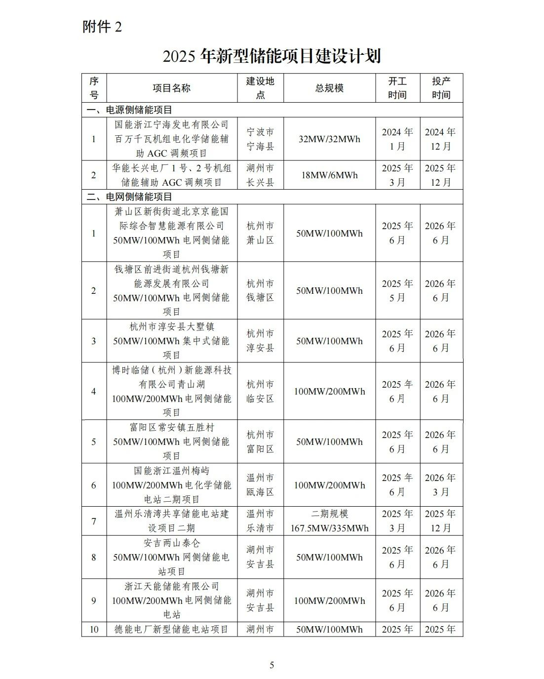 與此同時,《通知》還公布了浙江省2025年新型儲能項目建設計劃和儲備計劃清單,共55個項目,合計規(guī)模2.51GW/5.27GWh。