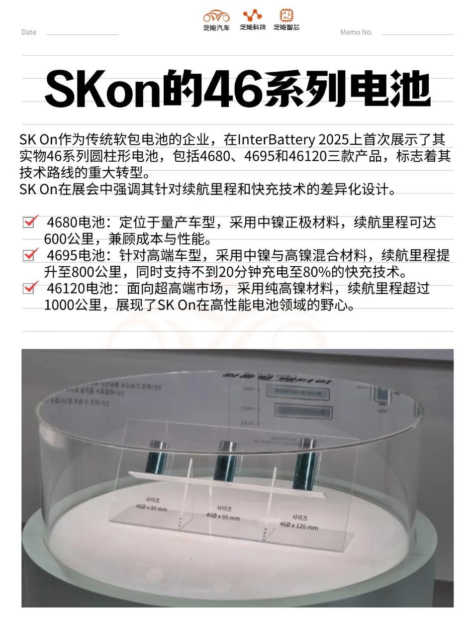 46120電池:面向超高端市場,采用純高鎳材料,續(xù)航里程超過1000公里,展現(xiàn)了SK On在高性能電池領(lǐng)域的野心。