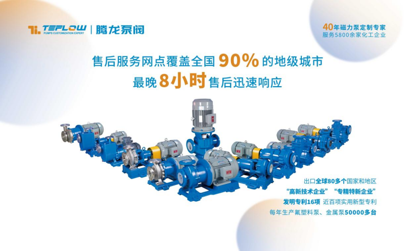 騰龍泵閥是一家集化工泵閥設(shè)計、生產(chǎn)、銷售于一體的國家級高新技術(shù)企業(yè)。公司具備年生產(chǎn)各種氟塑料泵、金屬泵40000多臺套的生產(chǎn)能力。產(chǎn)品在業(yè)界擁有良好的口碑和品牌優(yōu)勢,廣泛應用于石油化工、精細化工、原料藥制造、環(huán)保水處理、鋰離子電池電解液、PCB線路板清洗、晶圓清洗等行業(yè),服務(wù)于5800余家客戶。