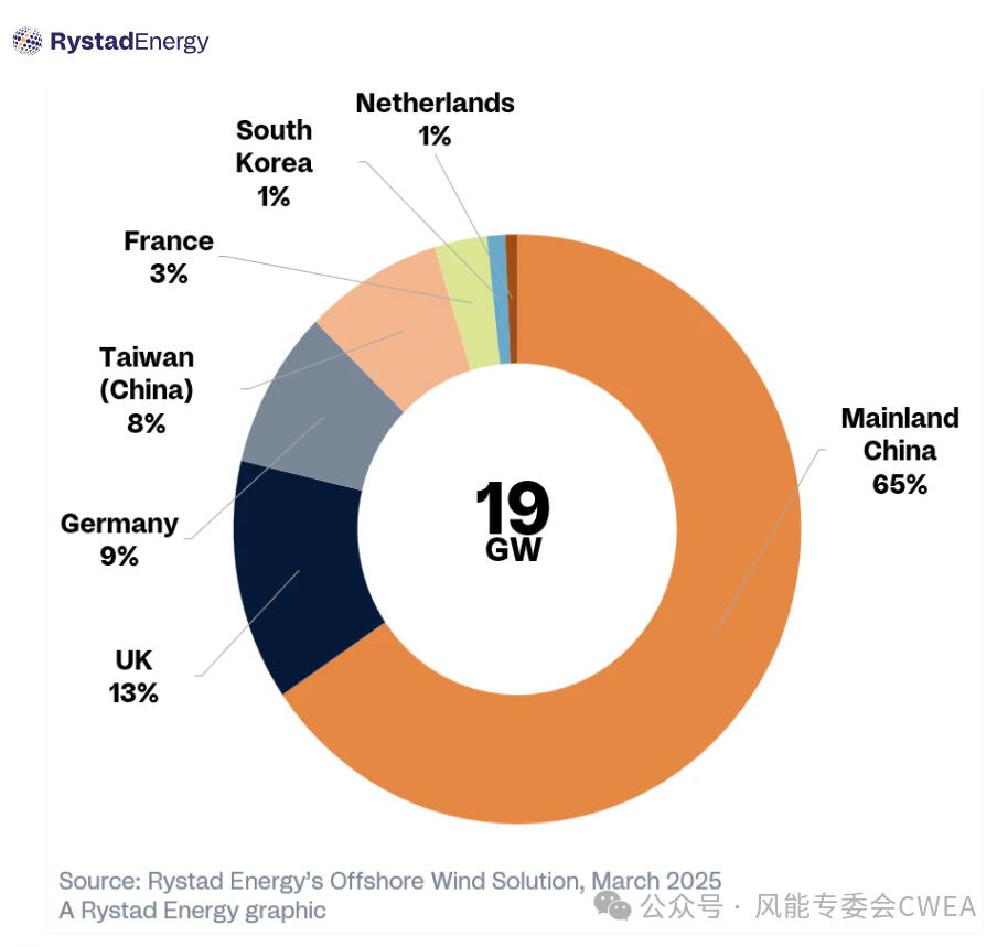 2025年預計全球海上風電裝機容量19GW(來源:Rystad Energy)