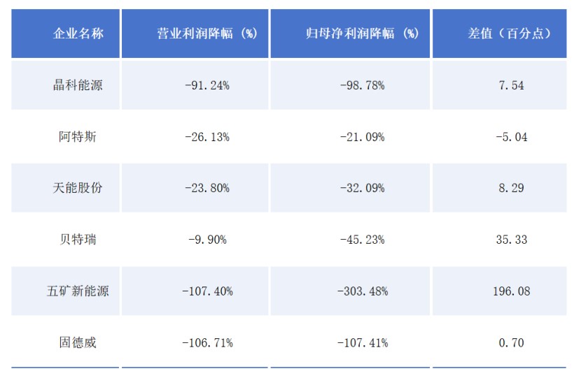 ? 正常經(jīng)營企業(yè)(如貝特瑞、阿特斯):利潤降幅約為營收降幅的1.5~2.5倍。