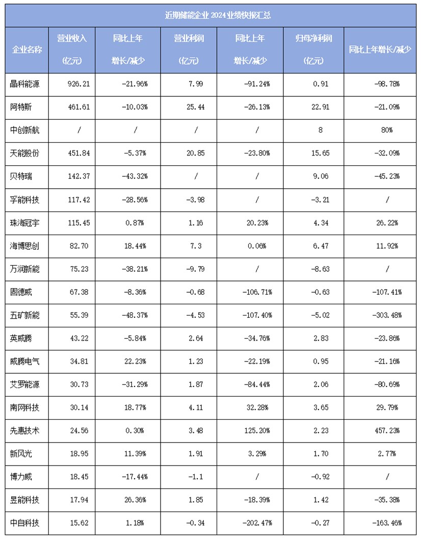 附表:近期儲能企業(yè)24年業(yè)績快報匯總