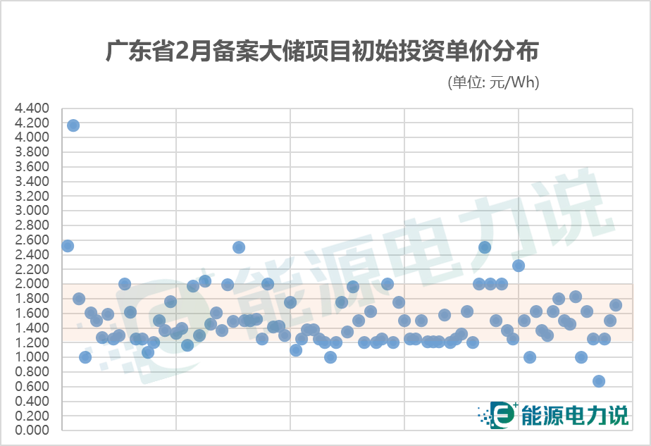 儲能時(shí)長為2h的鋰電項(xiàng)目96個(gè),項(xiàng)目初始投資單價(jià)去區(qū)間在0.675-4.167元/Wh,普遍項(xiàng)目投資單價(jià)則集中在1.200-2.000元/Wh。