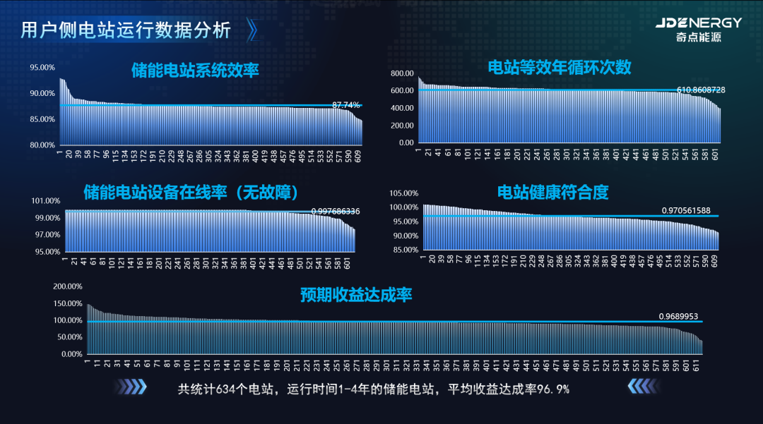 最終通過設(shè)備及電站各階段優(yōu)化措施,奇點投運儲能電站平均收益達(dá)成率達(dá)到96.9%;25%的電站實際收益超過可研測算。