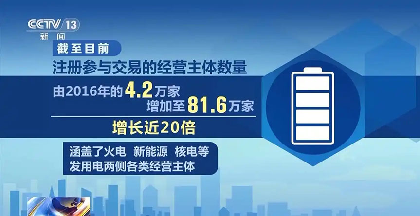 從參與市場化交易的主體來看,截至目前,注冊參與交易的經(jīng)營主體數(shù)量由2016年的4.2萬家增加至81.6萬家,增長近20倍,涵蓋了火電、新能源、核電等發(fā)用電兩側各類經(jīng)營主體。