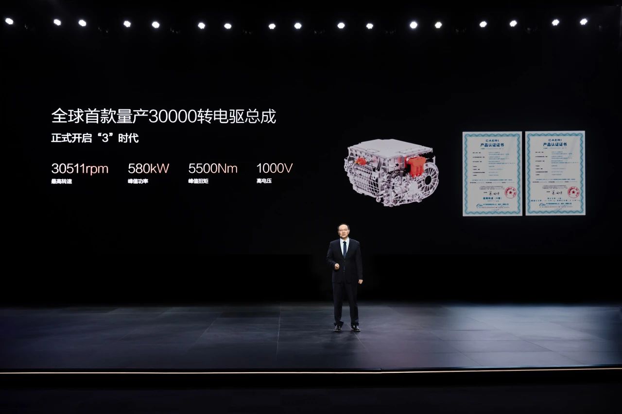 本次發(fā)布會,比亞迪還發(fā)布了全球首款量產(chǎn)3萬轉(zhuǎn)電機(jī)。比亞迪高級副總裁羅紅斌在發(fā)布會上表示:3萬轉(zhuǎn)電機(jī)不僅實(shí)現(xiàn)了車速的大幅提升,還可以大幅度降低電機(jī)重量,縮小電機(jī)體積,提高功率密度,重新定義巔峰性能,引領(lǐng)電驅(qū)總成進(jìn)入 “3” 時代。