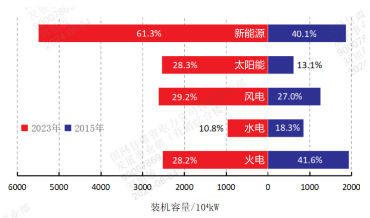圖1 2015年與2023年甘肅各類電源裝機容量