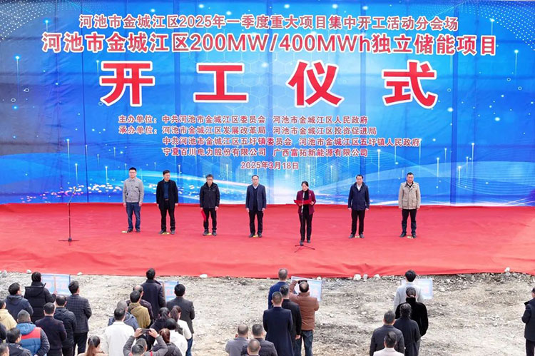 中國儲能網(wǎng)訊:3月18日,金城江區(qū)還在位于五圩鎮(zhèn)的工業(yè)集中區(qū)舉行廣西富拓新能源有限公司200MW/400MWh獨立儲能項目開工儀式。區(qū)委常委、常務(wù)副區(qū)長覃若禮宣布項目開工,區(qū)人大常委會副主任覃琴致辭、副區(qū)長鐘福祥主持開工儀式。
