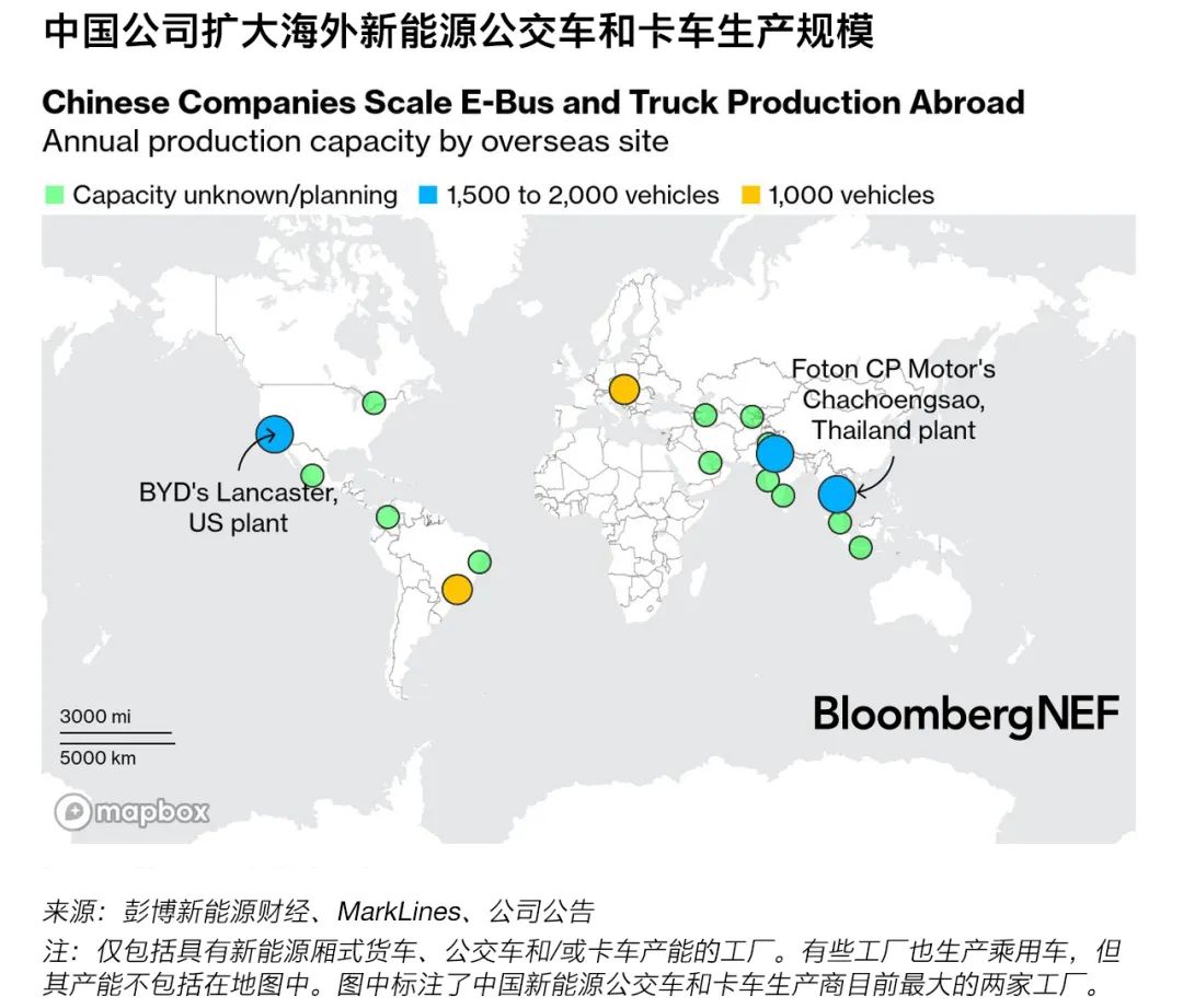 比亞迪現(xiàn)有和計(jì)劃中的新能源公交車和商用車海外生產(chǎn)基地?cái)?shù)量
