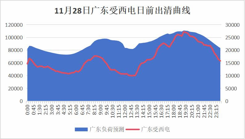 圖2:11月28日廣東受西電日前出清曲線(單位:兆瓦)