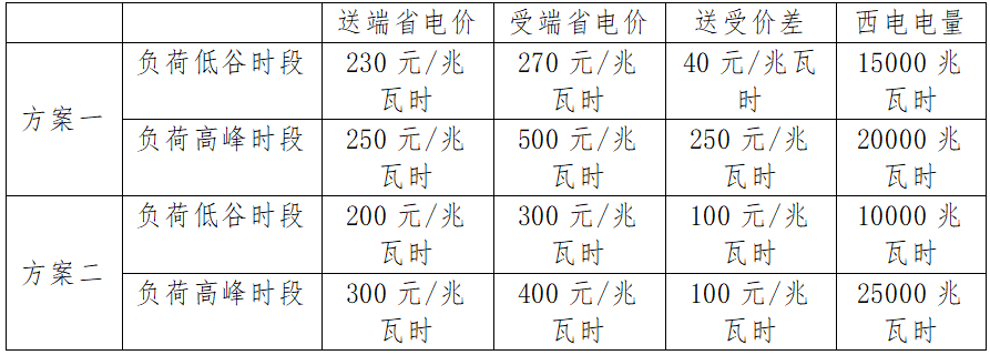 方案一:事前固定各時(shí)段的西電電量。方案二:區(qū)域現(xiàn)貨出清決定各時(shí)段的西電電量。
