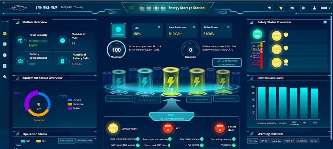 基于這一背景,北京西清能源科技有限公司依托清華大學(xué)四川能源互聯(lián)網(wǎng)研究院研發(fā)了一套完整的儲能電站主動安全及智能運維技術(shù),并基于此成功研發(fā)了儲能主動安全一站式預(yù)警系統(tǒng)。自從2020年實現(xiàn)國內(nèi)首臺最大單體儲能電站應(yīng)用以來,目前已累計覆蓋儲能裝機容量超過4.0GWh,單站最大容量超過600MWh。