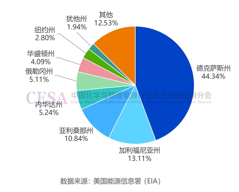 圖 美國(guó)擬在建電池儲(chǔ)能項(xiàng)目各區(qū)域規(guī)模占比