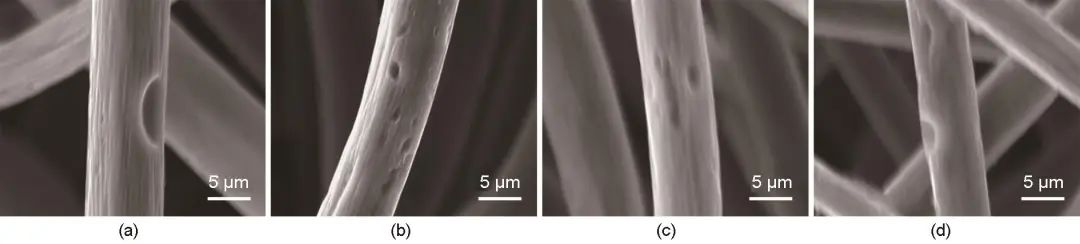 圖4 掃描電子顯微鏡圖像:(a) T600-10min-CF;(b) T650-10min-CF;(c) T700-10min-CF;(d) T750-10min-CF