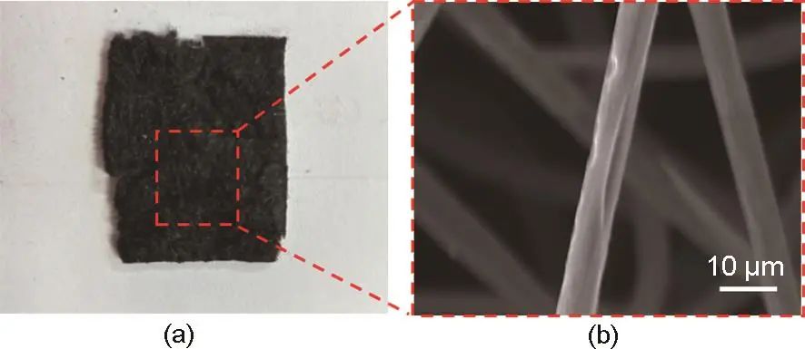 圖5 T750-20min-CF電極:(a) 實(shí)物圖;(b) 掃描電子顯微鏡圖像