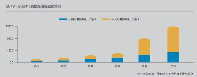根據(jù)中國電動汽車充電基礎(chǔ)設(shè)施促進聯(lián)盟的統(tǒng)計,截至2024年12月底,我國電動汽車充電設(shè)施總數(shù)達到1281.8萬臺,同比增長49.1%;其中公共充電設(shè)施357.9萬臺,私人充電設(shè)施923.9萬臺。按照2025年1月公安部發(fā)布的全國新能源汽車保有量3140萬輛計算,我國車樁比為2.44:1。2024年,我國電動汽車充電設(shè)施增量為422.2萬臺,月均增長35.2萬臺。全年充電量突破1100億千瓦時,同比增長38%。全國高速公路服務(wù)區(qū)累計建成充電樁3.5萬臺,服務(wù)區(qū)覆蓋率達到98%。