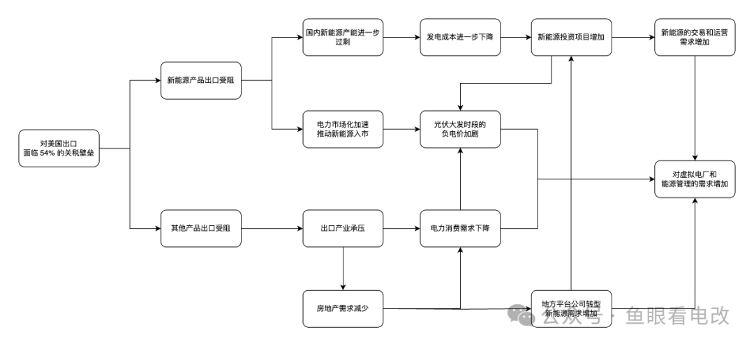 在沒有加征34%關稅的情況下,國內新能源,尤其是新能源裝機大省,已經出現了“投資+生產”的供給端,和“輸配+消納”的需求端較為明顯的矛盾,并推動“源網荷儲一體化”、“虛擬電廠”等相關政策的出臺,試圖突破電網+市場的瓶頸,增加消納。