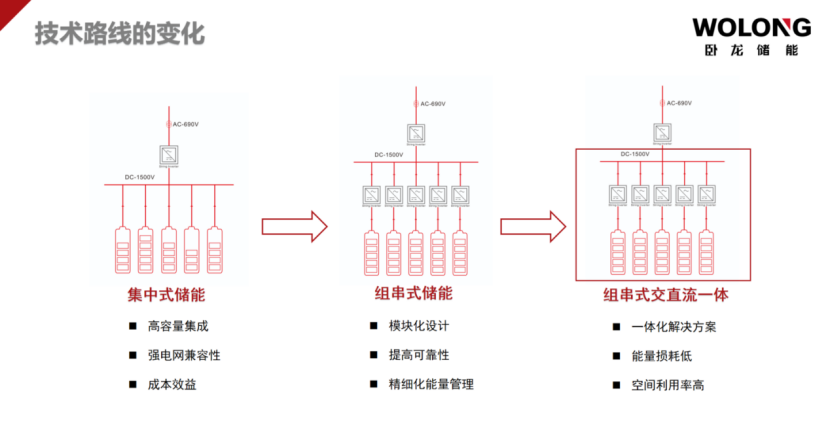 臥龍儲能自成立之初就選擇了組串式儲能系統(tǒng)解決方案。陳雨思解釋道:"組串式儲能系統(tǒng)能有效解決集中式儲能的短板效應。"她預測,隨著136號文的實施和市場化的推進,組串式儲能系統(tǒng)將成為主流選擇。臥龍目前已經(jīng)開發(fā)出組串式交直流一體化解決方案,具有能量損耗低、空間利用率高、故障切除容量低等技術(shù)優(yōu)勢。