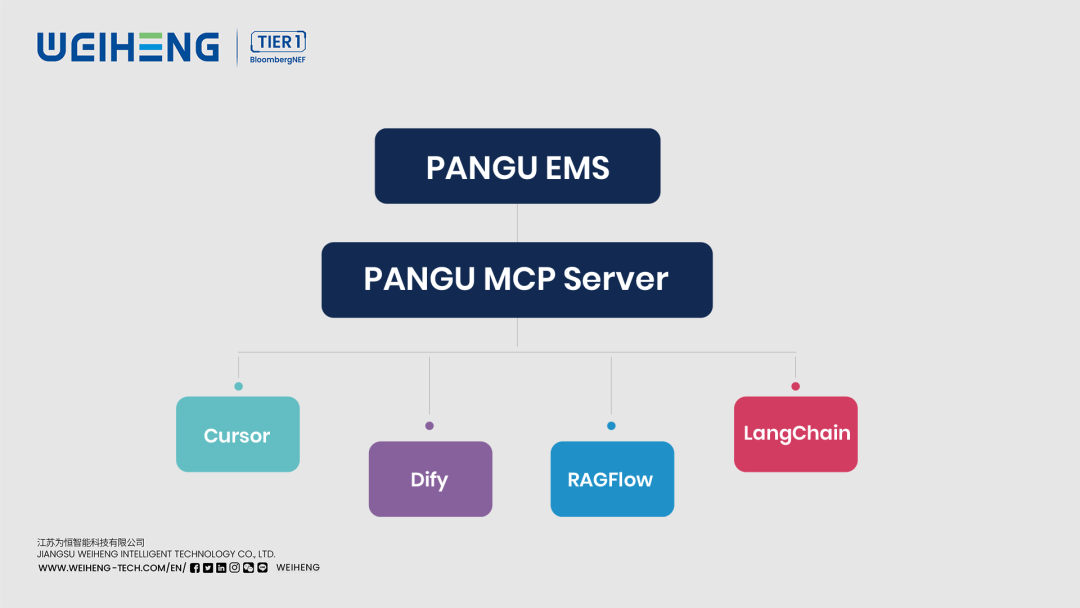 為恒智能前瞻性地意識(shí)到 MCP 協(xié)議的潛力,在業(yè)內(nèi)率先將 MCP 協(xié)議全面集成到 PANGU EMS 系統(tǒng)。從此,PANGU EMS 擁有了開放的 AI 接口,可以與各種遵循 MCP 標(biāo)準(zhǔn)的 AI 工具和平臺(tái)無縫對(duì)接,讓原本“孤立”的儲(chǔ)能系統(tǒng)升級(jí)為可無限拓展的智能中樞。