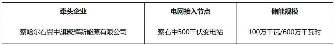 察右中旗100萬千瓦/600萬千瓦時(shí)電源側(cè)儲(chǔ)能項(xiàng)目牽頭企業(yè)公示