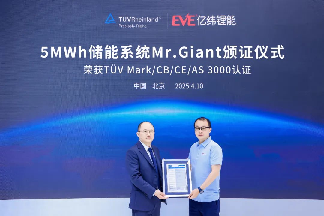 現(xiàn)場(chǎng),億緯鋰能旗艦產(chǎn)品Mr.Giant也迎來重要里程碑,順利獲得TüV Mark/CB/CE/AS 3000等國際認(rèn)證證書,具備進(jìn)入歐洲及澳洲市場(chǎng)的資質(zhì)。
