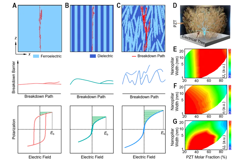 在此次研究中,團(tuán)隊(duì)創(chuàng)新性地在寬禁帶絕緣介電材料中采用“樹枝狀納米極性結(jié)構(gòu)”的設(shè)計(jì)策略,構(gòu)建了納米復(fù)合薄膜模型體系。