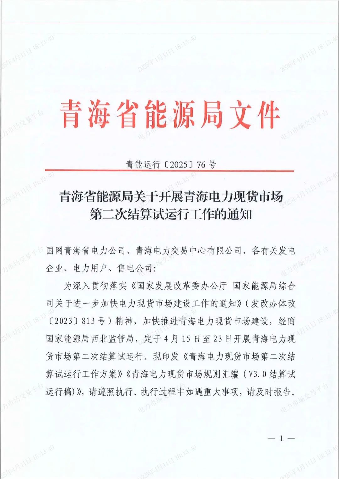 中國(guó)儲(chǔ)能網(wǎng)訊:近日,青海電力交易中心發(fā)布青海省能源局關(guān)于開(kāi)展青海電力現(xiàn)貨市場(chǎng)第二次結(jié)算試運(yùn)行工作的通知。隨通知下發(fā)《青海省電力現(xiàn)貨市場(chǎng)第二次結(jié)算試運(yùn)行工作方案》(以下簡(jiǎn)稱“方案”)和《青海省電力現(xiàn)貨市場(chǎng)規(guī)則匯編(V3.0結(jié)算試運(yùn)行稿)》(以下簡(jiǎn)稱“規(guī)則”)。