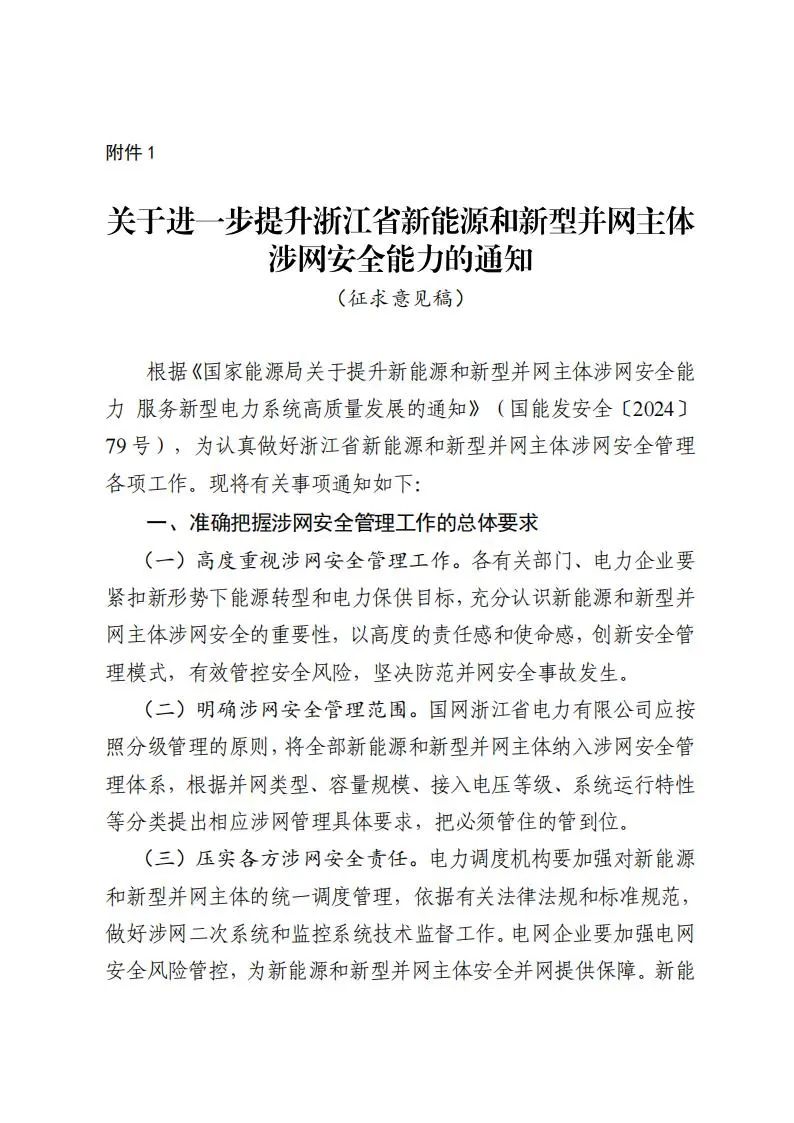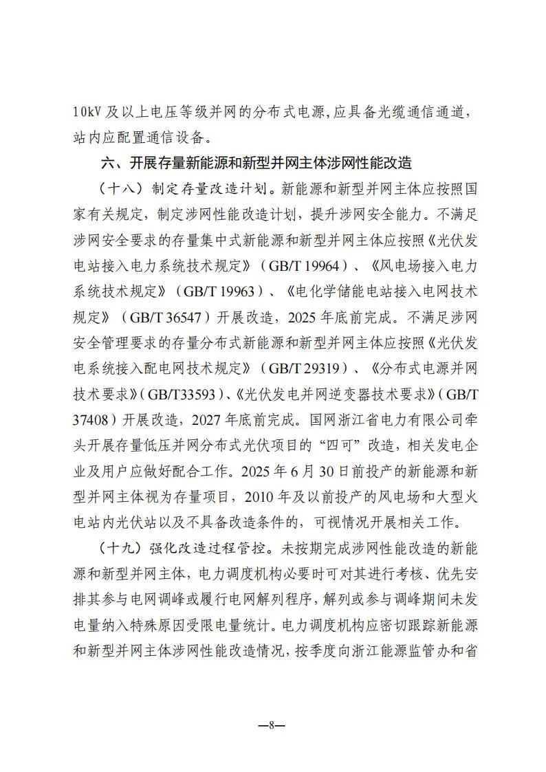 中國儲能網(wǎng)訊:4月15日,浙江能監(jiān)辦發(fā)布《關(guān)于進(jìn)一步提升浙江省新能源和新型并網(wǎng)主體涉網(wǎng)安全能力的通知(征求意見稿)》。文件提出,110kV及以上風(fēng)電場、10(6)kV及以上光伏和10(6)kV及以上電化學(xué)儲能應(yīng)具備緊急控制、一次調(diào)頻、有功控制、無功控制、高電壓穿越、低電壓穿越功能目滿足相應(yīng)的電壓適應(yīng)性、頻率適應(yīng)性要求,110kV及以上風(fēng)電場、35kV 及以上且交流側(cè)裝機(jī) 10MW 及以上光伏、10(6)kV及以上電網(wǎng)側(cè)儲能應(yīng)具備AGC、AVC功能,10kV及以上電壓等級電化學(xué)儲能應(yīng)同時(shí)具備慣量響應(yīng)功能。