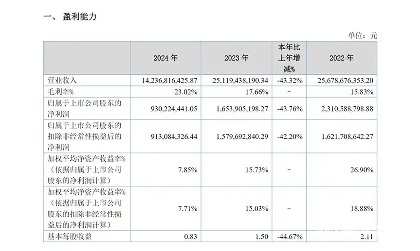 中國儲能網訊:4月15日晚,“北交所一哥”貝特瑞(835185.BJ)發(fā)布了2024年年報。報告期內,貝特瑞實現(xiàn)營業(yè)收入142.37億元,實現(xiàn)歸母凈利潤9.3億元;總資產333.47億元,同比增長13.49%;凈資產122.27億元,同比增長5.67%。2024年,公司保持穩(wěn)健的發(fā)展態(tài)勢,展現(xiàn)強大的經營韌性和市場競爭力。