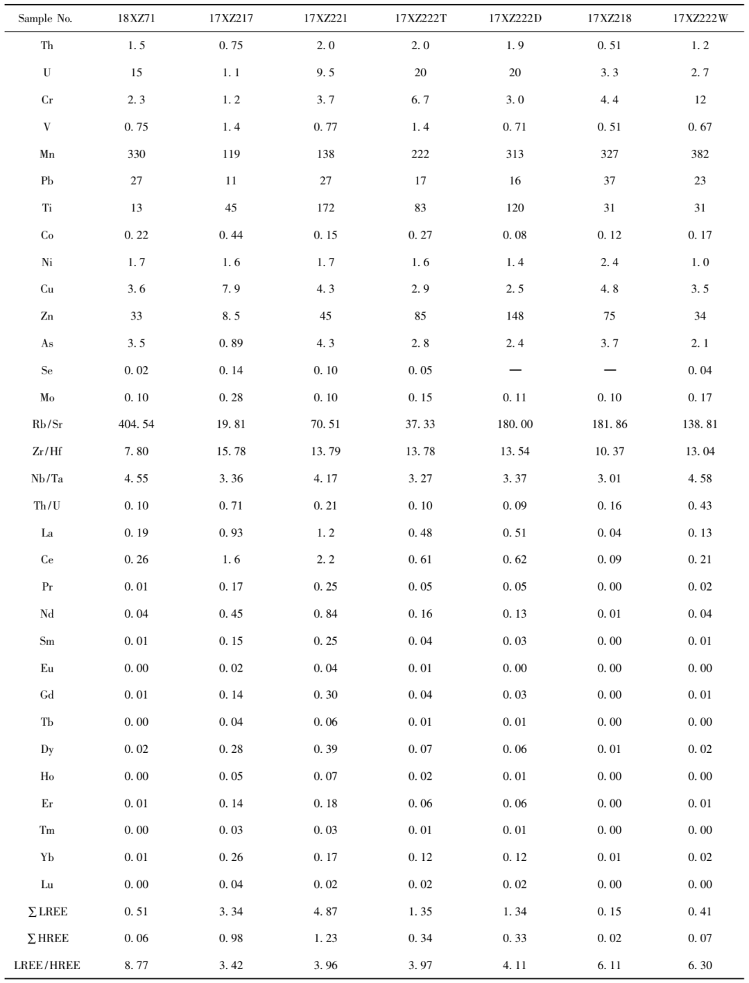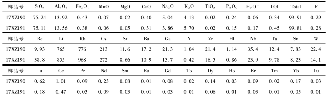 表 1 珠峰前進(jìn)溝鋰電氣石-鋰云母型偉晶巖全巖主量( wt% ) 和微量( × 10 - 6 ) 元素成分