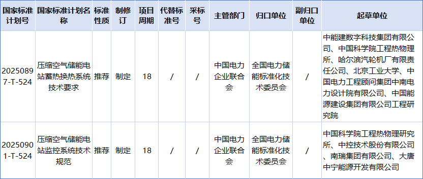 本批推薦性國家標準計劃共計296項,其中制定241項、修訂55項,推薦性國家標準285項、指導(dǎo)性技術(shù)文件11項。其中壓縮空氣儲能相關(guān)項目2個,分別為:壓縮空氣儲能電站蓄熱換熱系統(tǒng)技術(shù)要求、壓縮空氣儲能電站監(jiān)控系統(tǒng)技術(shù)規(guī)范。