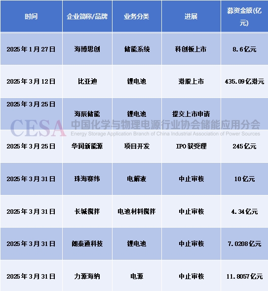 進入2025年,儲能相關(guān)企業(yè)的IPO進程明顯加快。海博思創(chuàng)在2024年12月19日獲得IPO注冊批復(fù),成為新能源行業(yè)上市“破冰”的標志性事件。其成功上市不僅為行業(yè)注入了強心劑,也彰顯了政策紅利的顯著成效。海博思創(chuàng)計劃將募集資金用于年產(chǎn)2GWh儲能系統(tǒng)生產(chǎn)建設(shè)項目、儲能系統(tǒng)研發(fā)及產(chǎn)業(yè)化項目等,這些投資計劃展示了公司在技術(shù)研發(fā)和產(chǎn)能擴張方面的雄心,也為其未來發(fā)展奠定了堅實基礎(chǔ)。