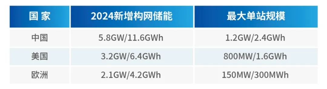 表3 2024年主要國(guó)家新增構(gòu)網(wǎng)儲(chǔ)能容量