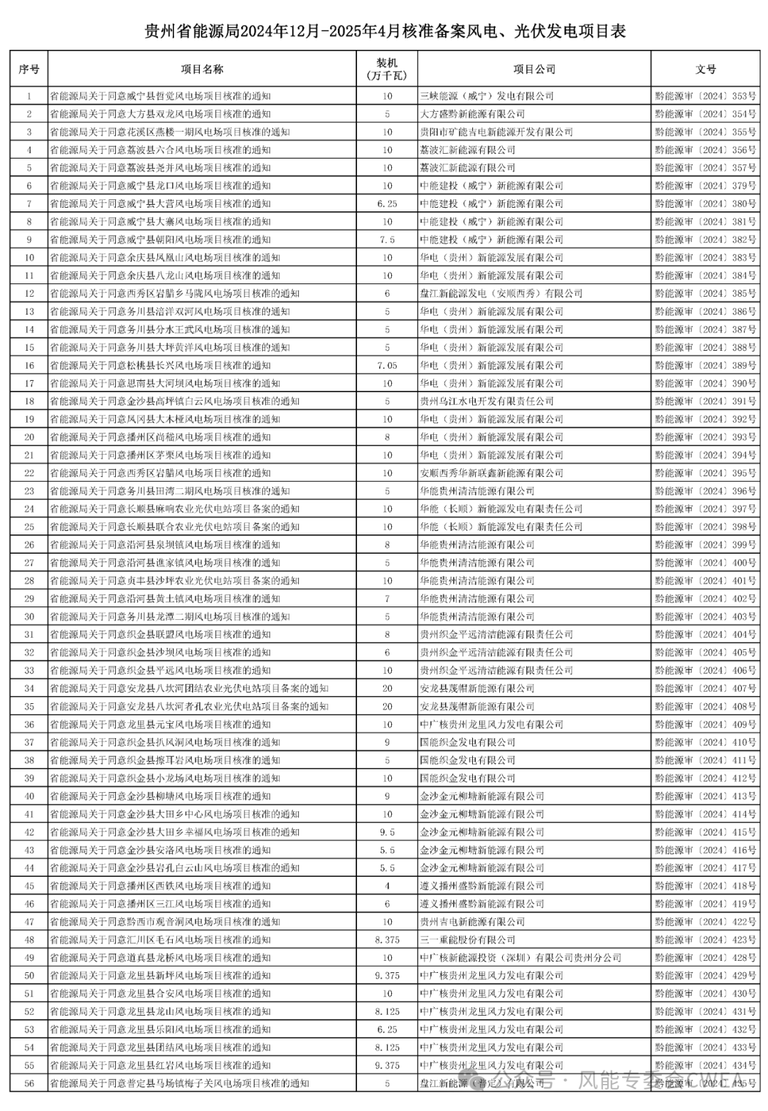 中國儲(chǔ)能網(wǎng)訊:4月24日,貴州省能源局2024年12月-2025年4月核準(zhǔn)備案風(fēng)電光伏發(fā)電項(xiàng)目情況公布,共公布了風(fēng)光項(xiàng)目94個(gè),其中,87個(gè)風(fēng)電項(xiàng)目總?cè)萘抗灿?jì)6.97GW,另有 7個(gè)光伏項(xiàng)目總?cè)萘抗灿?jì)1GW。