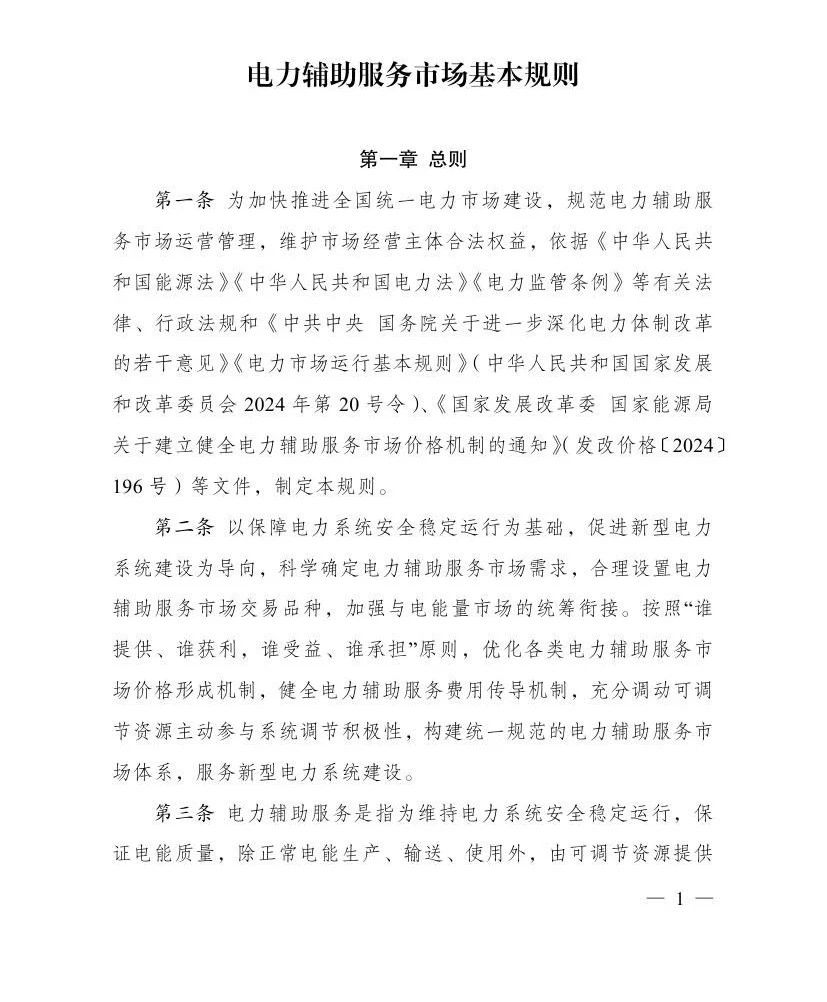 一、國家能源局派出機構(gòu)會同省級價格、能源主管部門要根據(jù)《規(guī)則》和發(fā)改價格〔2024〕196號文件等有關(guān)規(guī)定,及時組織市場運營機構(gòu)制修訂輔助服務(wù)市場實施細則,維護統(tǒng)一的公平競爭制度,確保與《規(guī)則》要求一致。