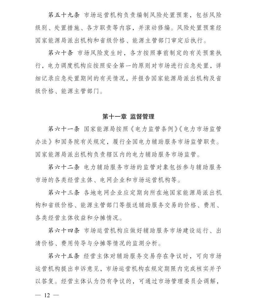 三、國家能源局派出機構(gòu)要會同省級價格主管部門等單位組織對電力輔助服務(wù)市場運行、資金使用、執(zhí)行效果等情況進行年度評估。重大問題及時報告國家發(fā)展改革委、國家能源局。