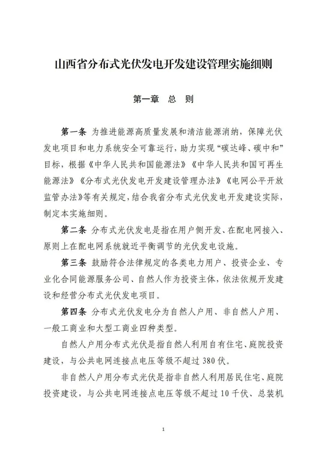 山西省分布式光伏發(fā)電開發(fā)建設(shè)管理實(shí)施細(xì)則
