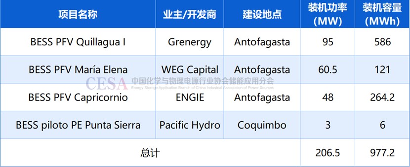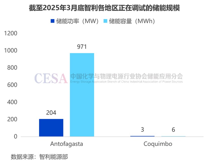 截至2025年3月31日,智利共有4個(gè)鋰電池儲能項(xiàng)目正在進(jìn)行調(diào)試,總規(guī)模達(dá)207MW/977MWh,其中204MW/971MWh項(xiàng)目位于安托法加斯塔,占比99%。
