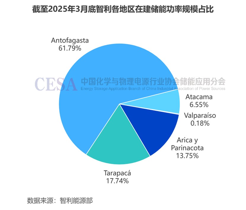 截至2025年3月31日,智利共有12個(gè)鋰電池儲能系統(tǒng)正在建設(shè)中,總規(guī)模1.68GW/6.122GWh,總投資21.4億美元(折合人民幣155.71億元),其中安托法加斯塔地區(qū)在建項(xiàng)目規(guī)模達(dá)1.038GW/3.883GWh,功率規(guī)模占比61.79%。