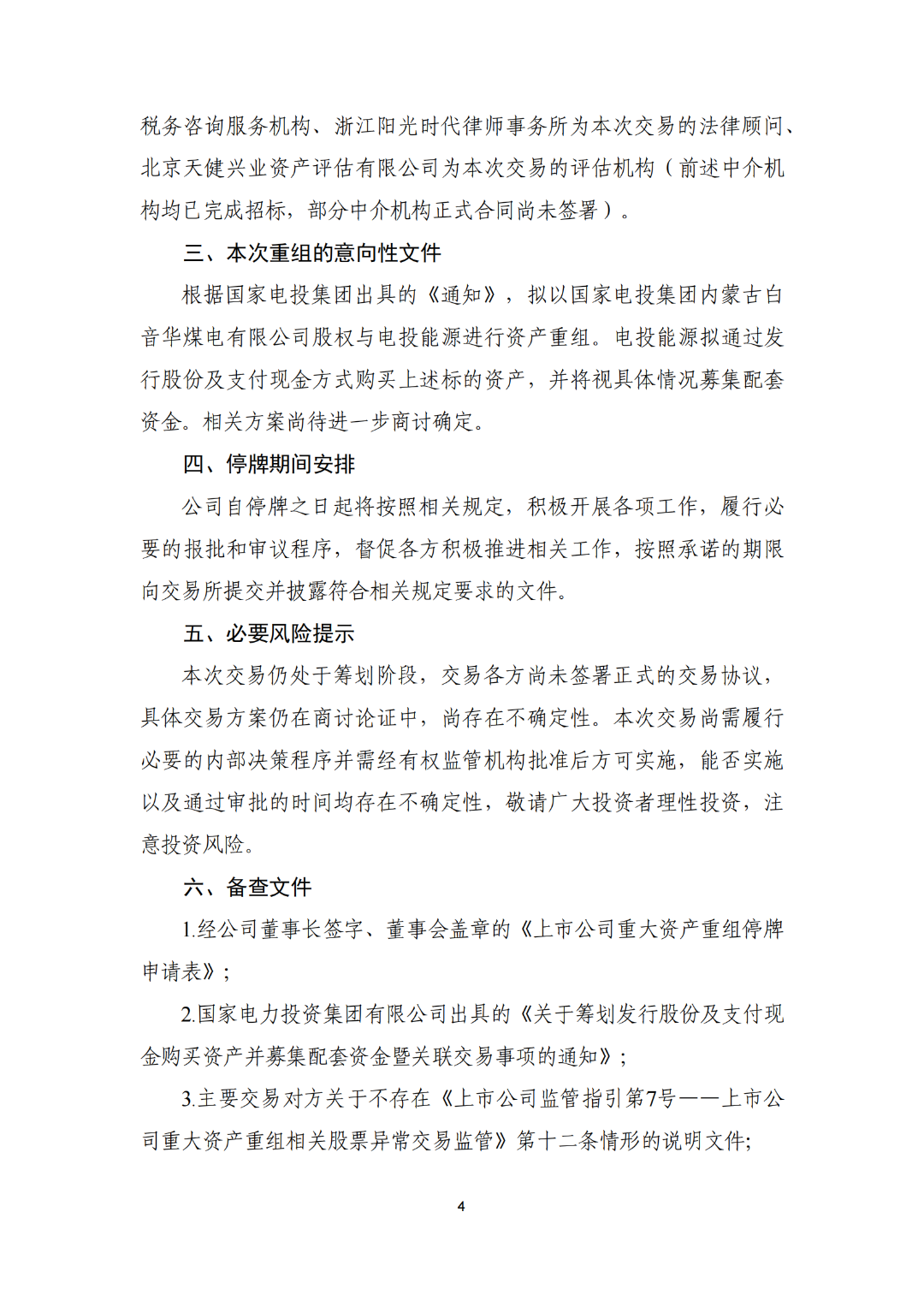 電投能源股票自2025年5月6日(星期二)開市時起停牌,停牌日期自2025年5月6日起不超過10個交易日。
