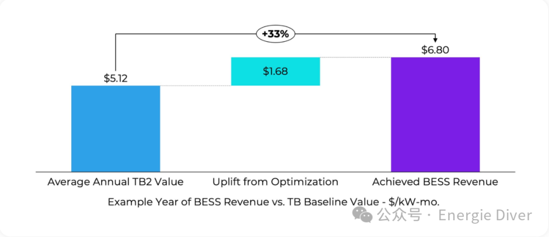 為了更好地將運(yùn)營商表現(xiàn)與位置的影響分開,我們使用上下(TB-Top and Bottom)收入價(jià)差作為基線來標(biāo)準(zhǔn)化BESS性能。