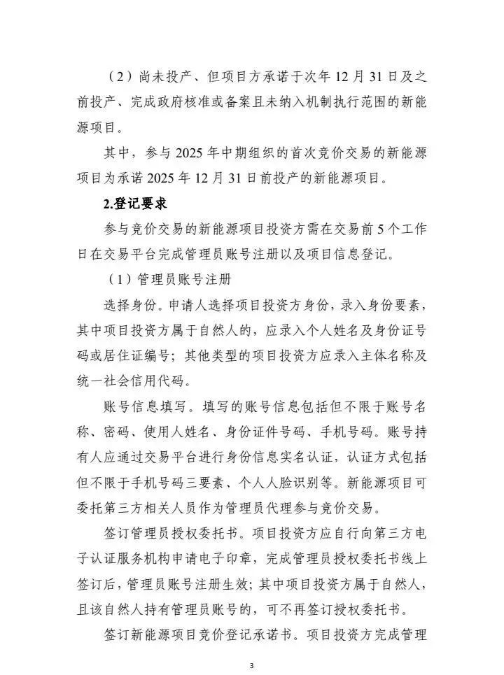 每年底組織已投產(chǎn)及次年投產(chǎn)的新能源項目競價交易,2025年中期組織開展首次競價交易