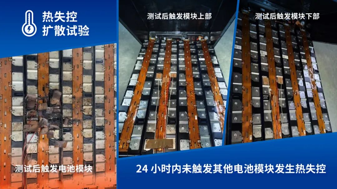 在熱失控擴散試驗中,所選取的單個電池簇被置于 300℃ 極端觸發(fā)條件下 24 小時,從單體電芯、鋰電池模組到鋰電池柜,均未出現(xiàn)起火、爆炸及觸發(fā)其他電池模塊熱失控現(xiàn)象,其安全性能得到成功驗證。