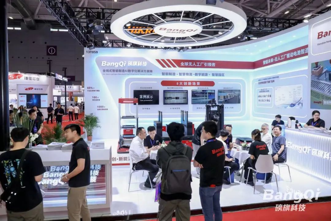 本次展會,磅旗科技憑借多款行業(yè)創(chuàng)新解決方案、移動機器人系列產(chǎn)品成為本屆展會的人氣焦點,為來自全球各地的客戶朋友呈現(xiàn)了一場電池?zé)o人工廠的沉浸式體驗,贏得國內(nèi)外參展觀眾的廣泛關(guān)注和贊譽。