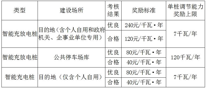 獎(jiǎng)勵(lì)標(biāo)準(zhǔn)見下表,符合政策要求的項(xiàng)目可連續(xù)3年獲得獎(jiǎng)勵(lì)。其中,智能充電樁獎(jiǎng)勵(lì)僅適用于2024年底前,將個(gè)人自用非智能充電樁替代為智能充電樁的項(xiàng)目。