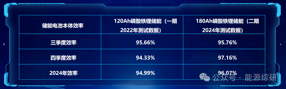 技術(shù)迭代后儲能本體效率提升明顯,磷酸鐵鋰本體效率隨電芯容量增大有所提升,0.5C磷酸鐵鋰儲能本體的首年同期循環(huán)效率由一期120Ah電芯94.99%提高到二期180Ah電芯96.07%。
