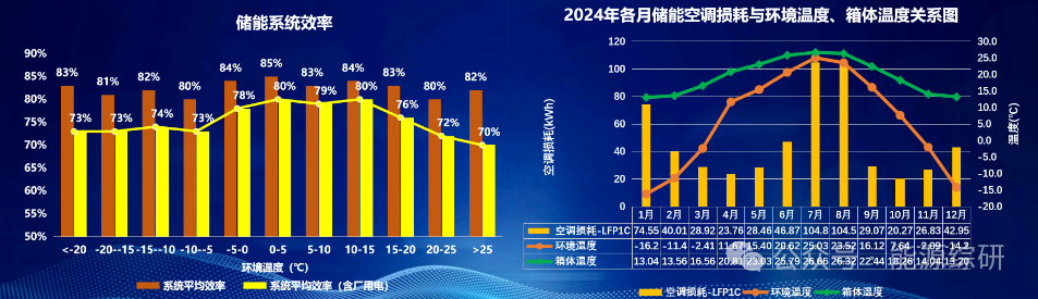 儲能系統(tǒng)在環(huán)境溫度0-5℃范圍內(nèi)時系統(tǒng)效率(含廠用電)最高達到80%,在高于25℃時的環(huán)境溫度運行時效率最低為70%,環(huán)境溫度對系統(tǒng)效率的影響達到10%。