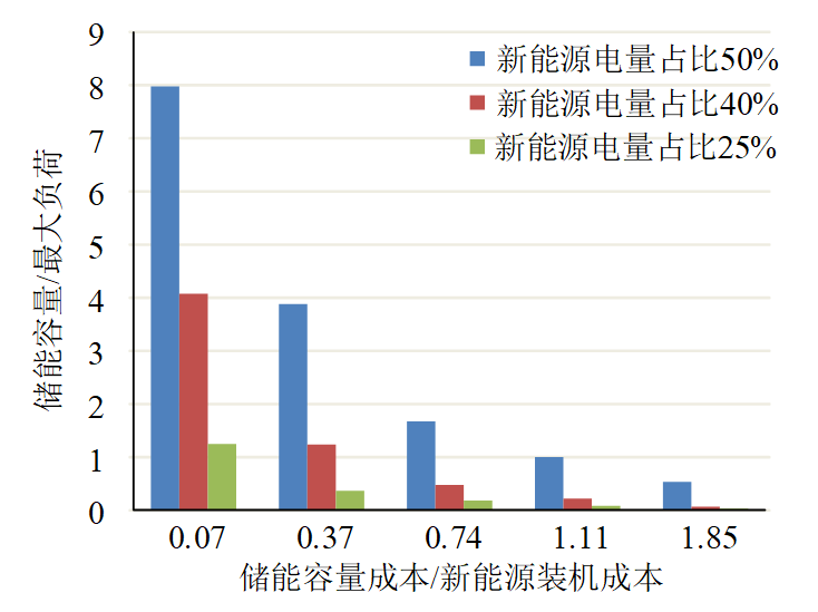 圖3 不同新能源電量占比下儲能配置容量